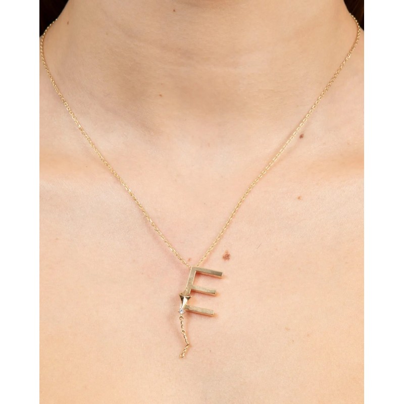 E Harfi Sallantılı Altın Kolye