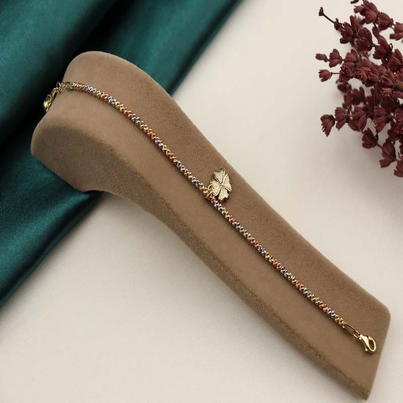 Zarafeti ve şıklığı bir araya getiren 14 Ayar Altın Bileklik, dört yapraklı yonca detayıyla tasarlanarak şansın ve pozitif enerjinin simgesi haline gelmiştir. İnce işçiliği ve estetik tasarımıyla her kombine uyum sağlayan bu bileklik, zincir modeli sayesinde dayanıklı ve göz alıcı bir görünüm sunar.
