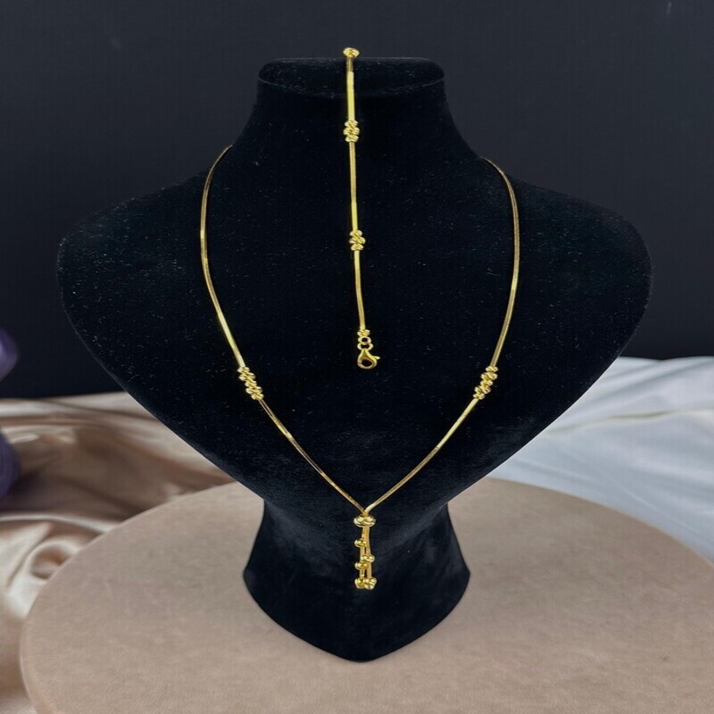 Modern çizgileri geleneksel ışıltıyla buluşturan bu Dorika top püsküllü 22 ayar altın kolye & bileklik Set , 14.86 gram ağırlığı ve zarif tasarımıyla stil sahibi kadınların vazgeçilmez tercihi olmaya aday. İnce yapısı, üzerinde yer alan parlak dorika toplar ve uç kısmındaki hareketli püskül detayı ile özel günlerde ya da günlük şıklığınızda rahatlıkla kullanılabilir.