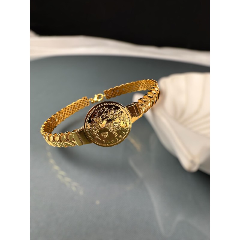 Tarihi zarafet modern bileğinizde! 22 ayar saf altından üretilen bu 14.97 gramlık kelepçe bilezik, Osmanlı tuğralı ihtişamlı madalyon detayıyla stilinize asil bir dokunuş katıyor. Hem klasik hem gösterişli bir duruşa sahip bu özel tasarım, hem günlük kullanım hem de özel günler için mükemmel bir tercihtir.