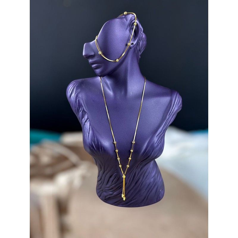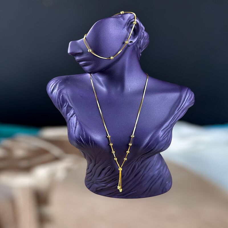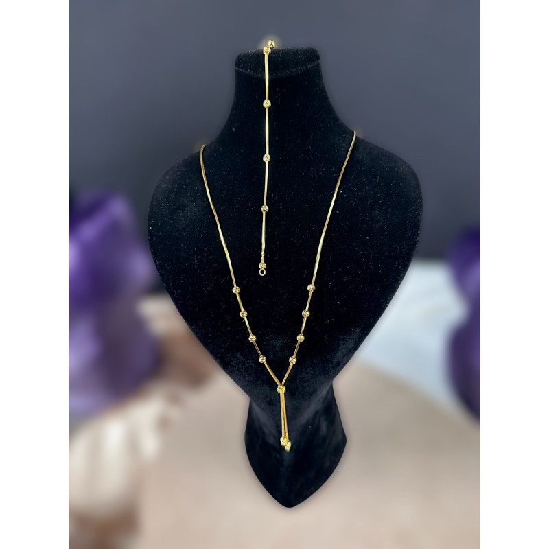 • Tasarım: İnce şık zincir ve boncuk detaylı kolye, uyumlu bileklik