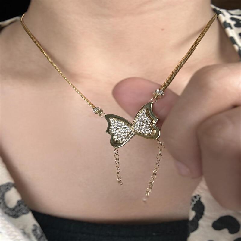 Zarafetin ve özgürlüğün simgesi: Kelebek tasarımlı 14 ayar altın kolye .