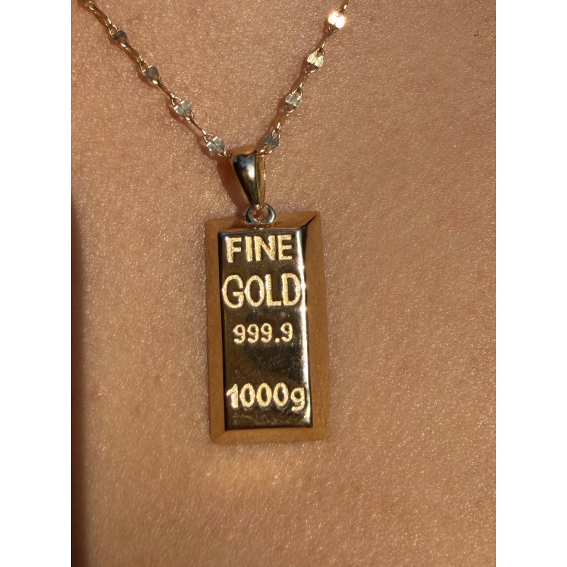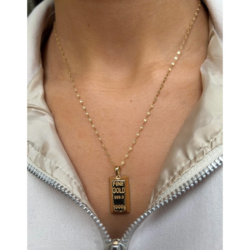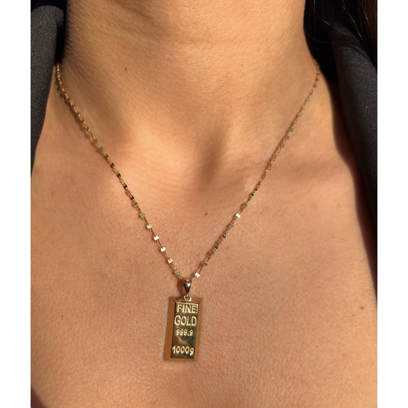 14 Ayar Zincirli Altın Külçe Kolye