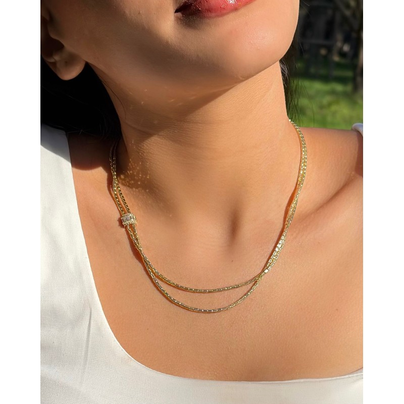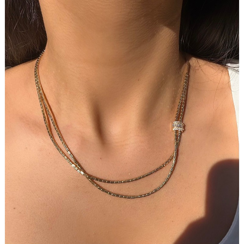 14 Ayar Altın Baget Taşlı Kolye